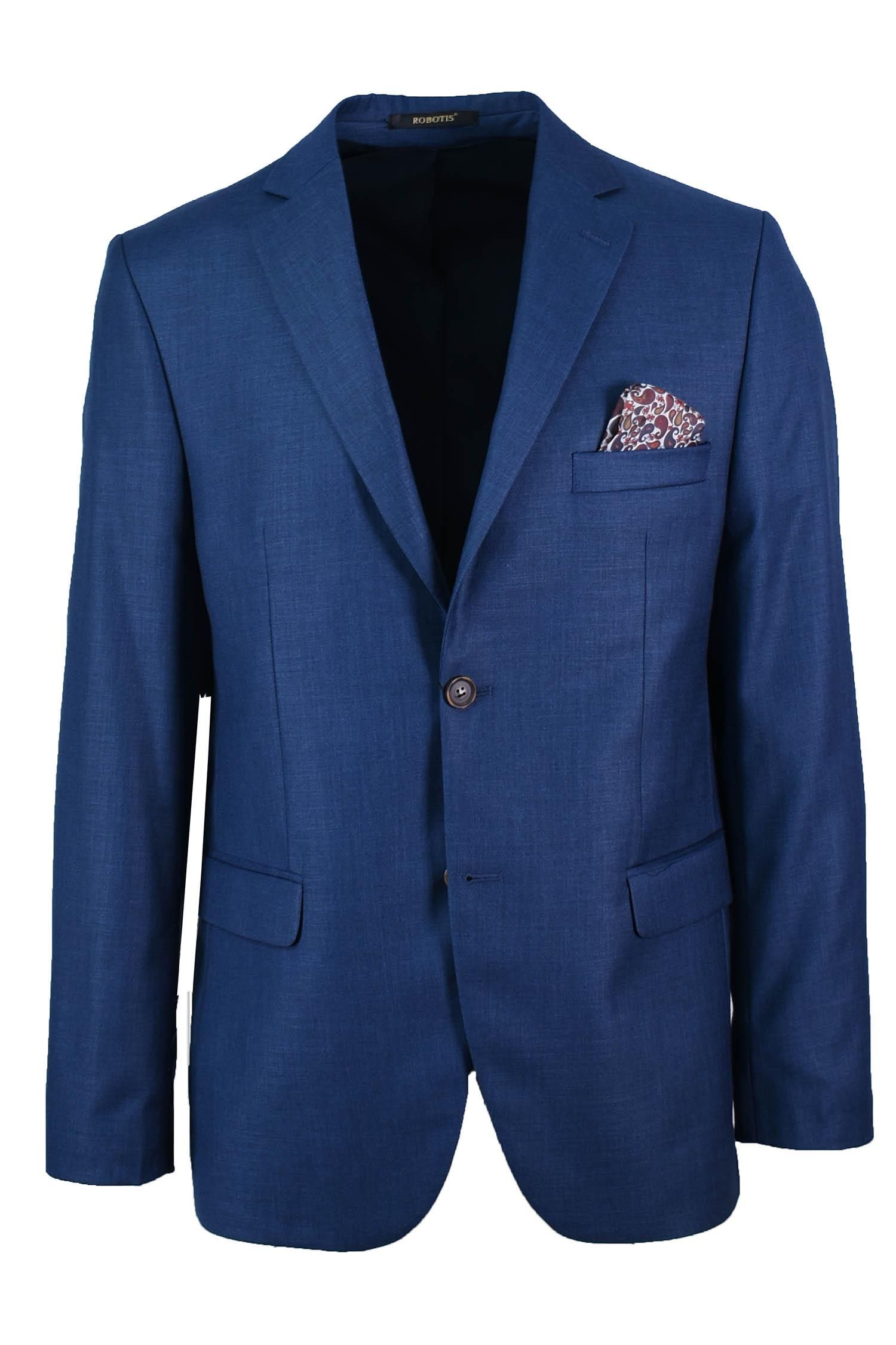 Κοστούμι σε ύφασμα flama. Το σακκάκι είναι δύκουμπο με δύο ανοίγματα πίσω,μαντήλι στο σχέδιο της εσωτερικής φόδρας με δύο τσέπες εσωτερικά, το παντελόνι είναι χωρίς πίετα εσωτερικά έχει ζωναρόφοδρα με το λογότυπο της εταιρείας και λάστιχο περιμετρικά για καλύτερη συγκράτηση, φοδραρισμένο εσωτερικά σε κανονική γραμμή.