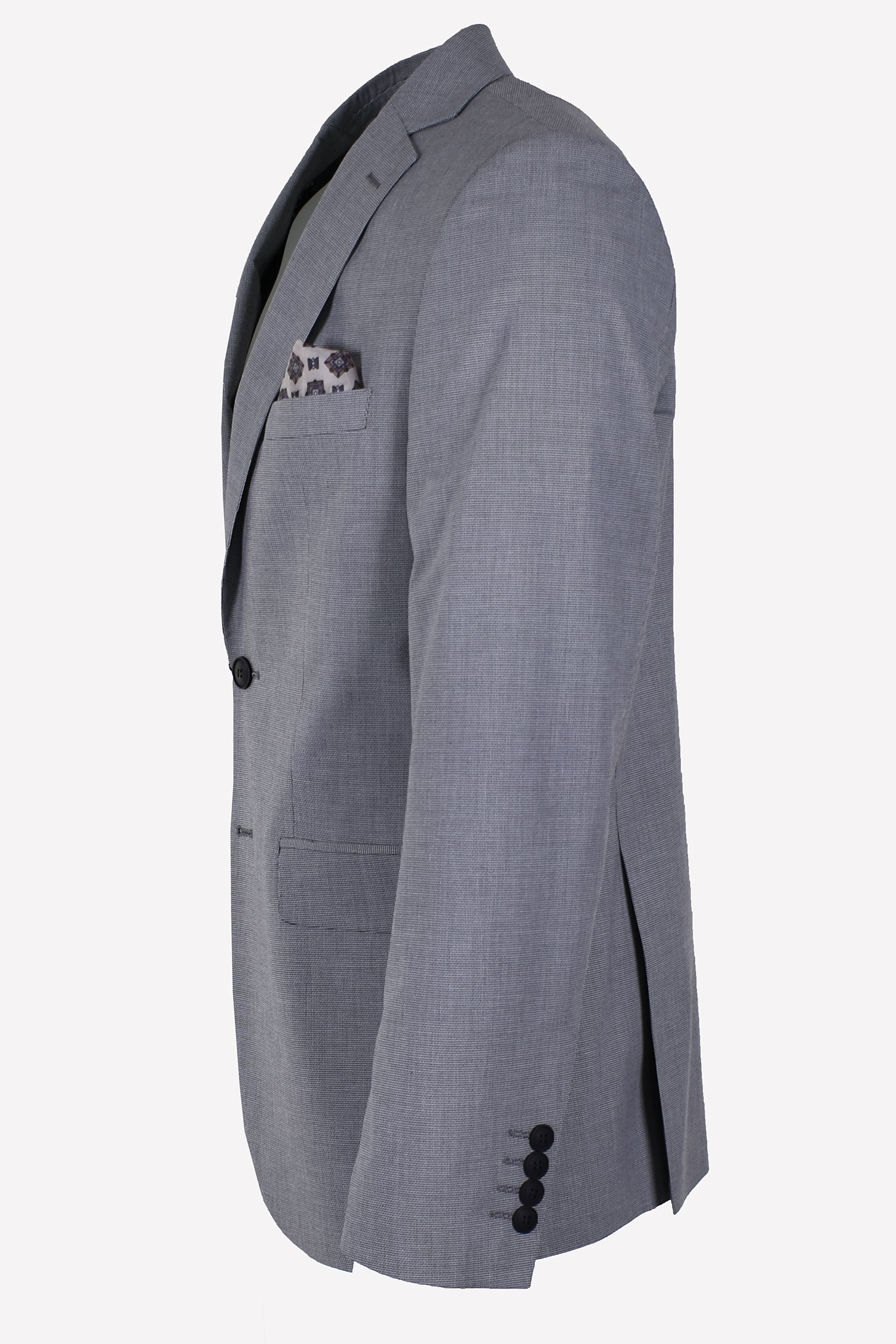Κοστούμι σε στενή γραμμή σε ύφασμα βαμβακερό σε απόχρωση γκρί .Η υφανσή του έχει μικροσχέδιο στο ύφασμα.Το σακάκι είναι με δύο κουμπιά μπροστά και δύο ανοίγματα πίσω, και δύο εσωτερικές τσέπες.Το παντελόνι είναι σε στενή γραμμή με δύο τσέπες μπροστά και δύο πίσω.Εσωτερικά έχει ζωνάρι με λάστιχο για καλύτερη συγκράτηση.Ενα κοστούμι ιδανικό για να καλύψη καθε ανάγκη μεσα στη μέρα.Συμβουλευτείτε τον οδηγό μεγεθών η καλέστε μας για οποιαδήποτε διευκρίνηση.