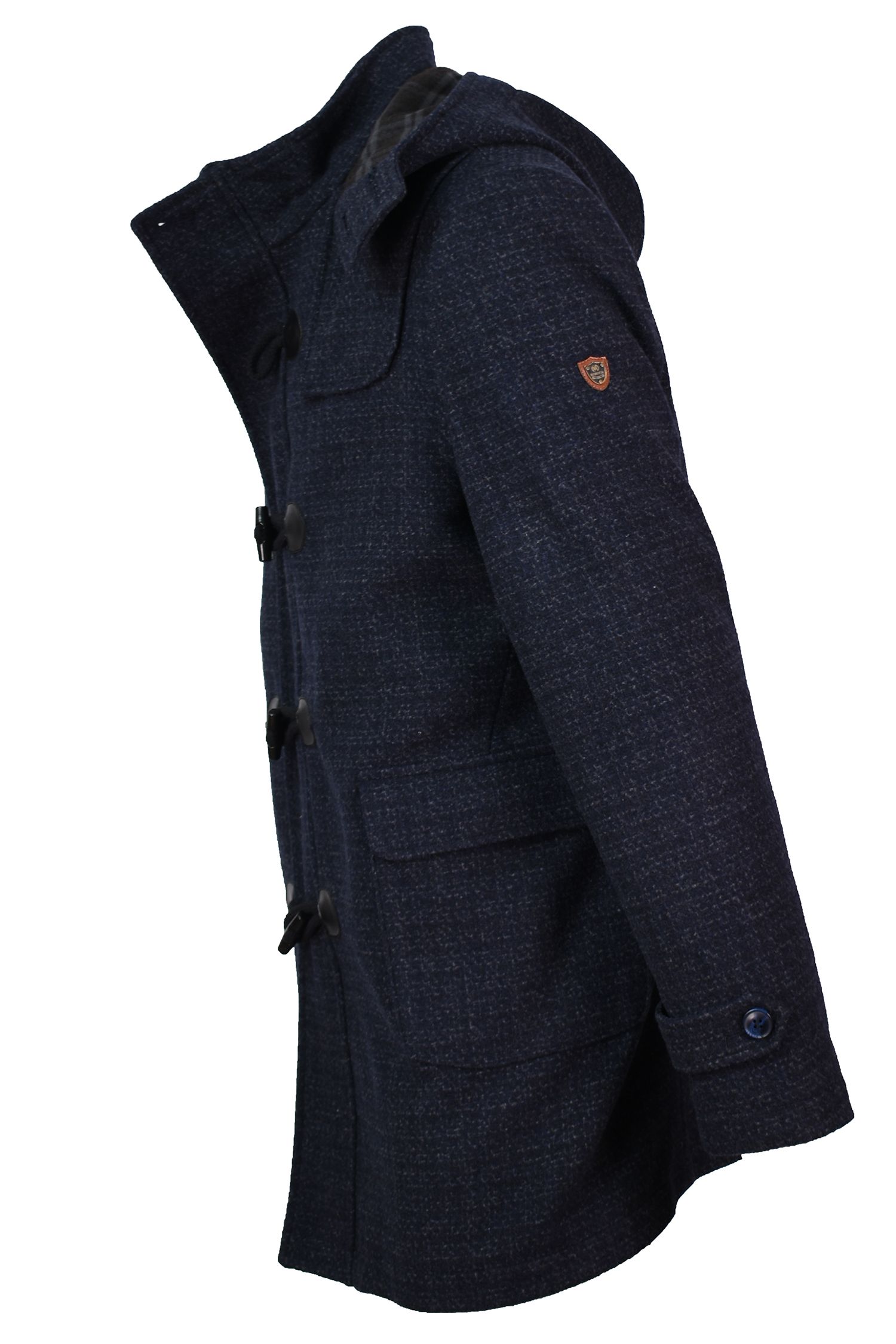 Ημίπαλτο μάλλινο μοντγκόμερυ σε σχέδιο καρο ,ραμμένο σε κανονική γραμμή.Εχει εσωτερική επένδυση καπιτονέ με δυο τσέπες εσωτερικά με φερμουάρ, το λογότυπο είναι κεντημένο στη φόδρα εσωτερικά. Εξωτερικά δύο τσέπες με καπάκι,κουκούλα επενδυμένη με ύφασμα μάλλινο αποσπώμενη με φερμουάρ.Διακριτικό σήμα της εταιρείας στο μανίκι.