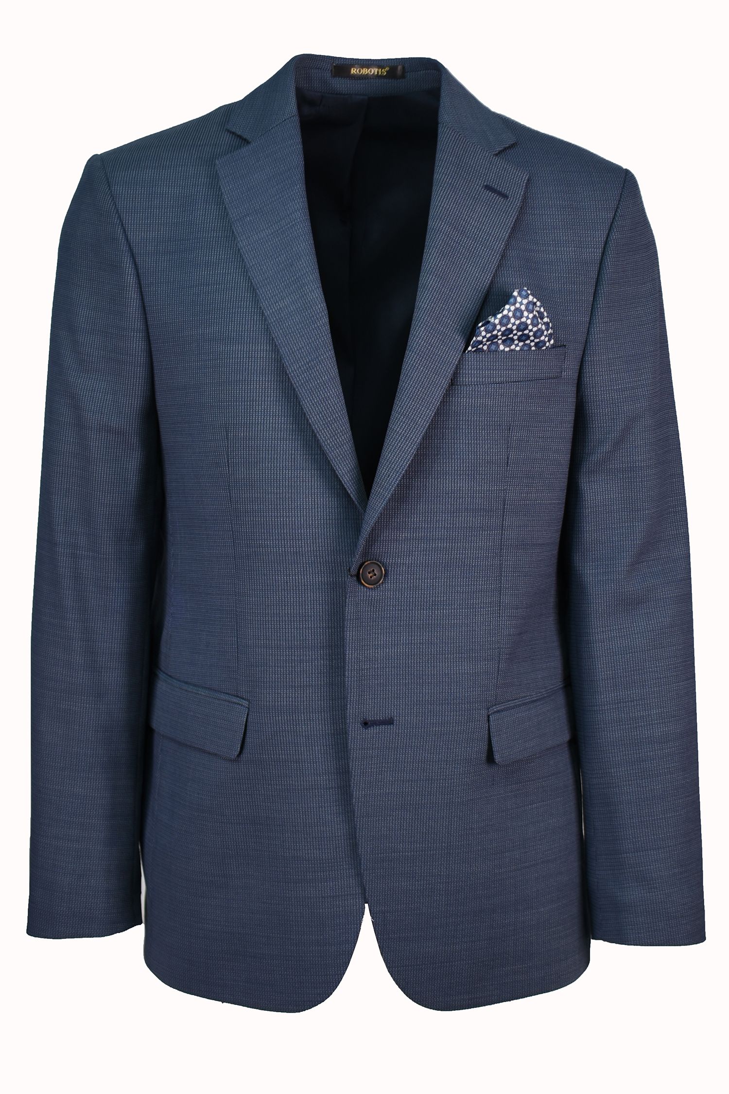 Σακάκι ολόμαλλο (cool wool) blaizer με μικροσχέδιο στο ύφασμα,ραμμένο σε κανονική γραμμή.Δύο κουμπιά μπροστά και δύο ανοίγματα πίσω τέσσερα κουμπιά στο μανίκι με κλειστή κουμπότρυπα.Εσωτερική φόδρα σχεδιαστή όπως και το μαντήλι.