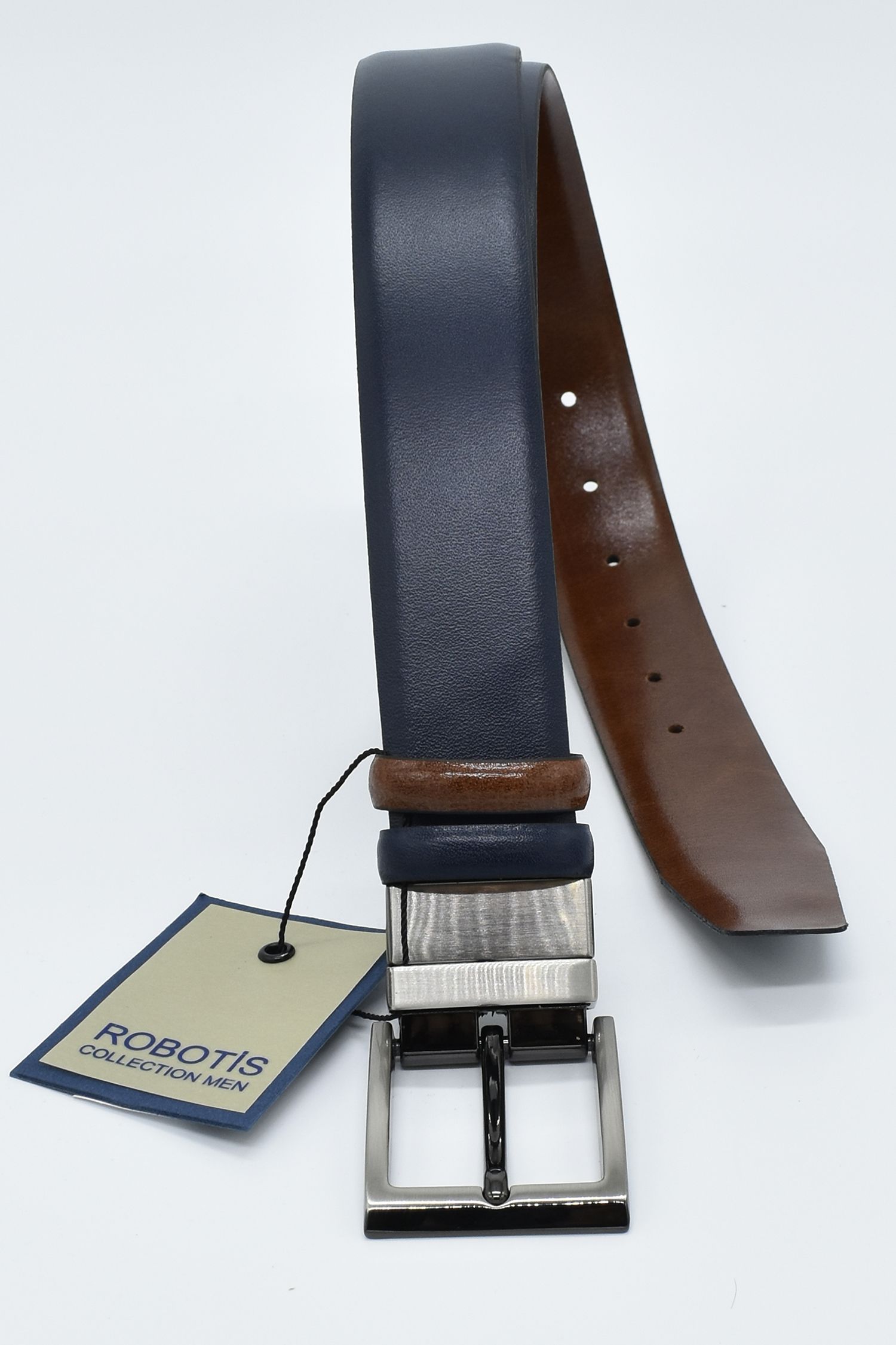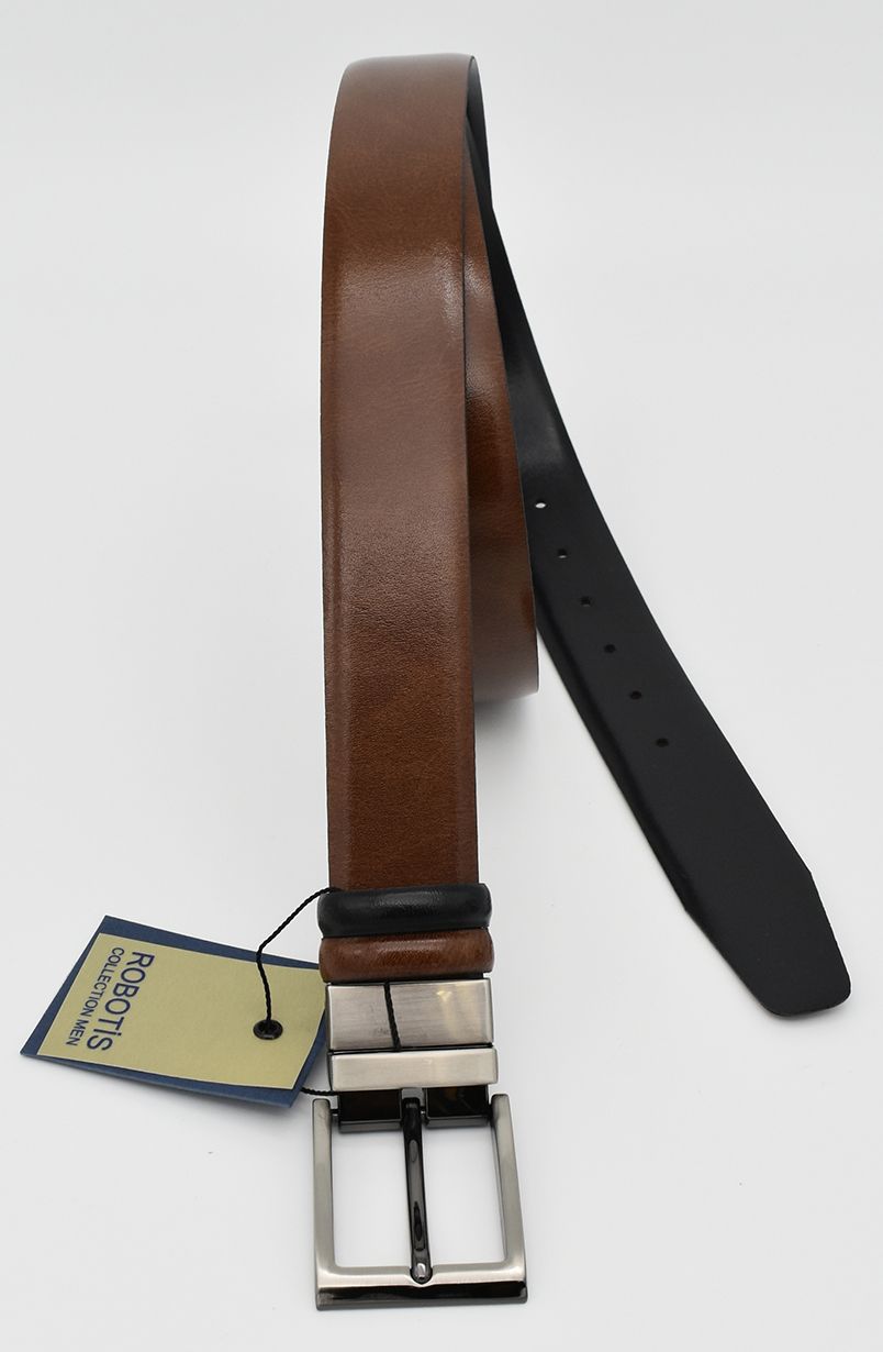Ζώνη δερμάτινη σε απόχρωση ταμπά και μαύρο.Διαθέτει αγκράφα μεταλική η οποία περιστρέφεται και έτσι μπορεί να φορεθεί και απο τις δύο πλευρές ώστε να συνδιάσετε το ταμπά και μαύρο παπούτσι σας.Είναι πολύ καλής ποιότητας δέρμα και κατασκευής.